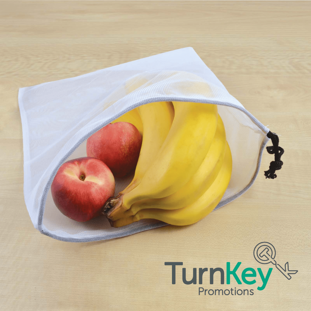 Harvest Produce Bags in Pouch Includes five mesh drawstring bags in a drawstring polyester pouch.