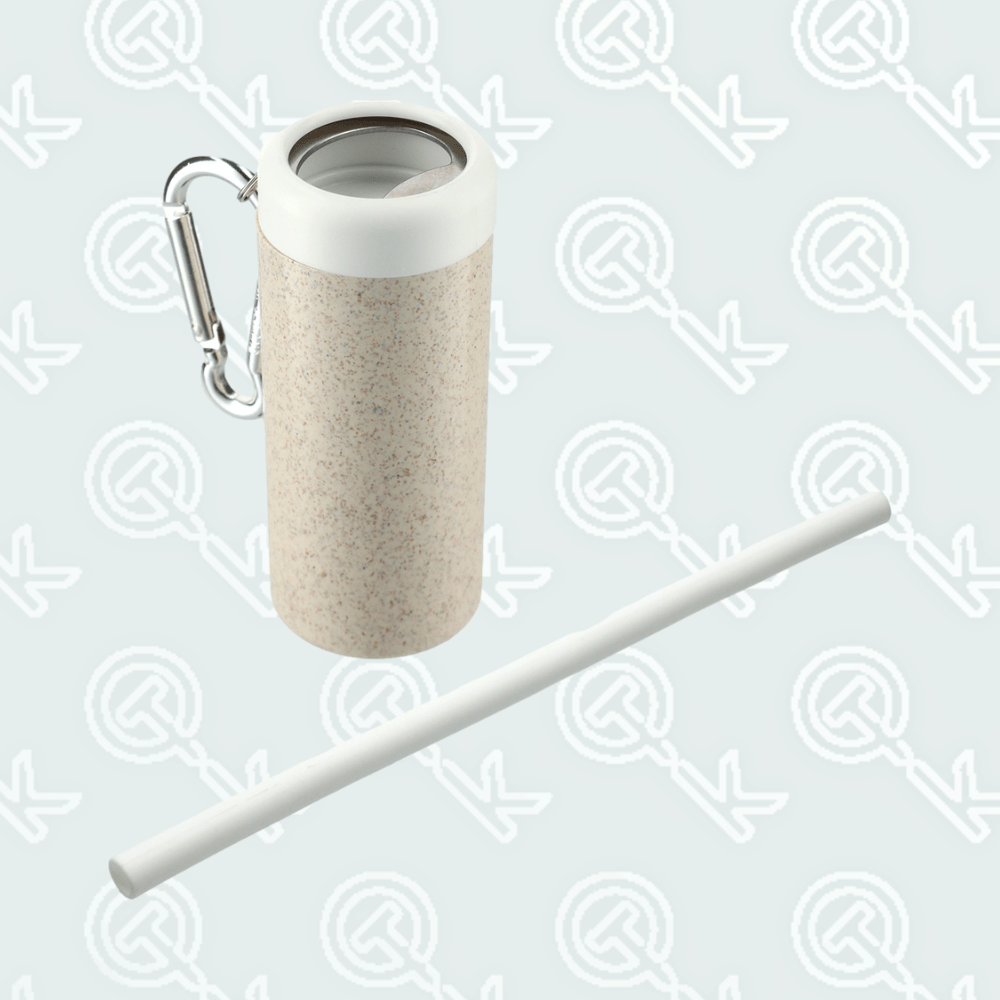 Reuseable Straw in Bottle Opener Case The flexible, reusable straw collapses to fit into a portable container equipped with a bottle opener.
